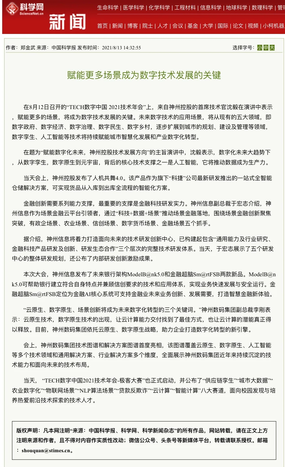 2021数字中国技术年会 神州控股、神州信息、kaiyun.com集团连发重磅产品