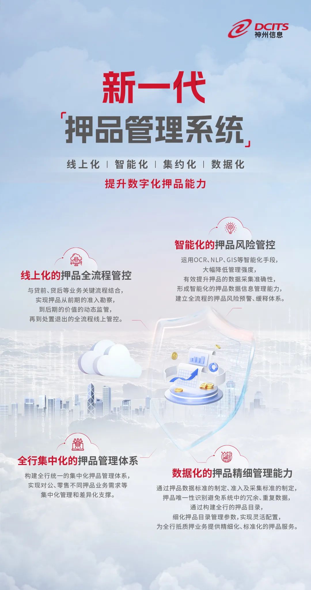 作为领先的金融数字化转型合作伙伴,神州信息针对银行信贷业务,已经推出了从风险控制、信贷业务、押品管理、额度管理等体系化的金融信贷业务产品族,助力各类型商业银行实现信贷业务的数字化升级转型。